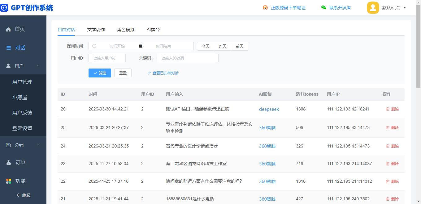 - 其他功能:系统还提供了消息归档、批量导入账号、AI擂台对话记录等附加功能,方便用户更好地管理和使用系统。