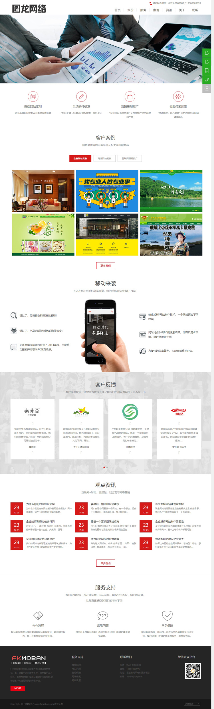 最新网络公司织梦网站模板,DEDECMS-UTF内核开发自适应模板,附带测试数据,页面内容都可以自由修改,独立后台管理网站。全球顶级HTML5+CSS3趋势技术:自适应模板,代码简洁利于SEO,电脑/平板/手机/微信都能够自适应并且得到一致的优质体验,使模板打开速度更快,更利于SEO搜索引擎优化;