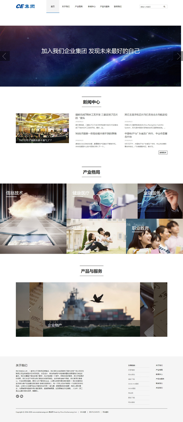 模板介绍:首页模板、新闻列表、单页、联系我们、文章页。