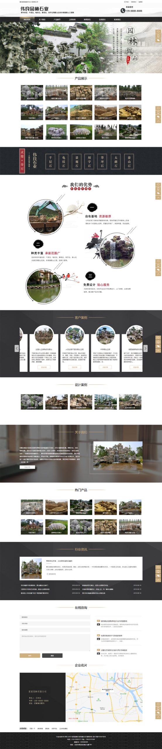 园林石业装饰工程织梦企业模板(带手机端),适用于DedecmsV5.7系统,DEDECMS内核UTF编码。黑色配色,稳重大气,适用于园林石业、装饰工程类企业使用,兼容各项终端设备。