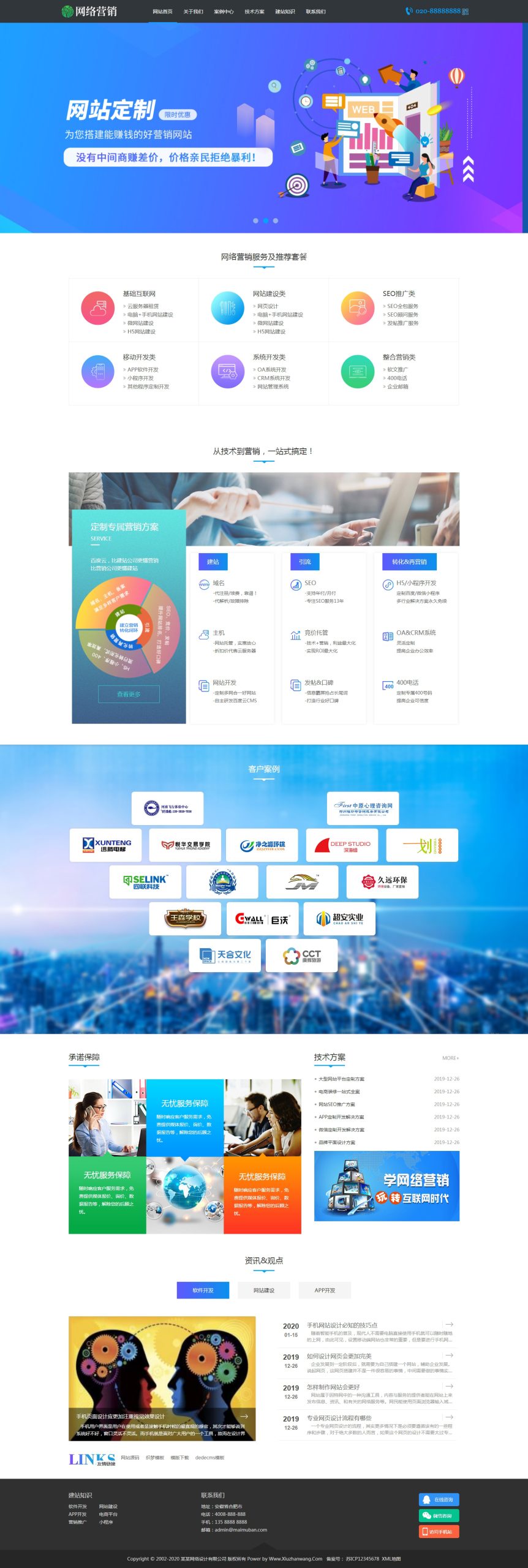 一套大气的网络营销服务,网站定制,seo网络推广服务,微信小程序开发公司网站织梦源码dedecms下载。包含:关于我们、案例中心、技术方案、建站知识、联系我们等模块页面。