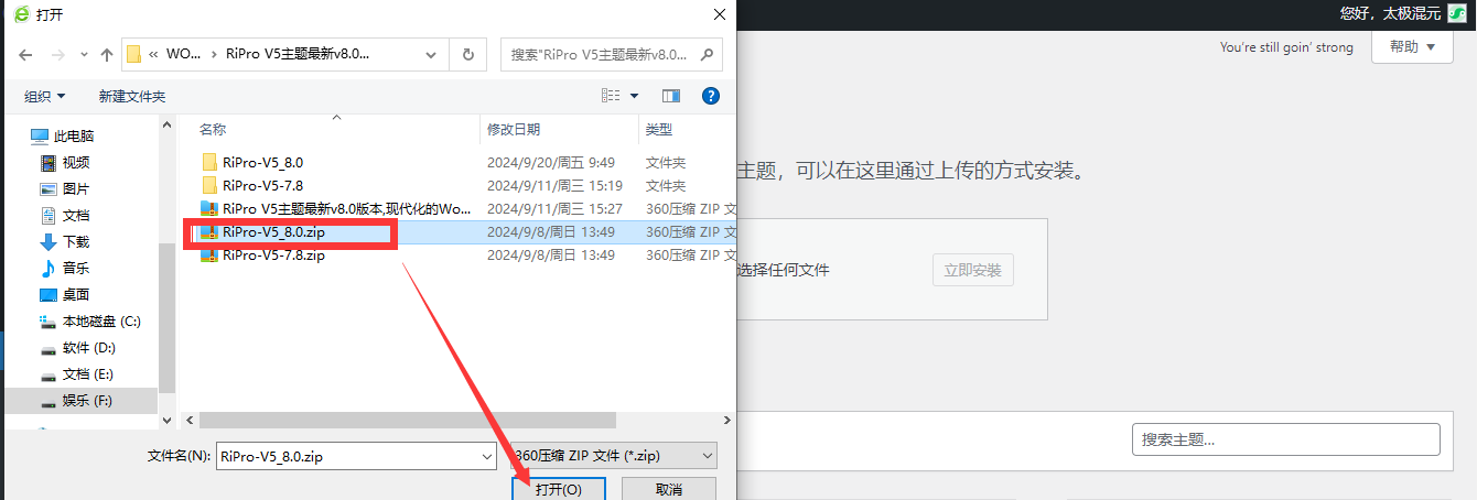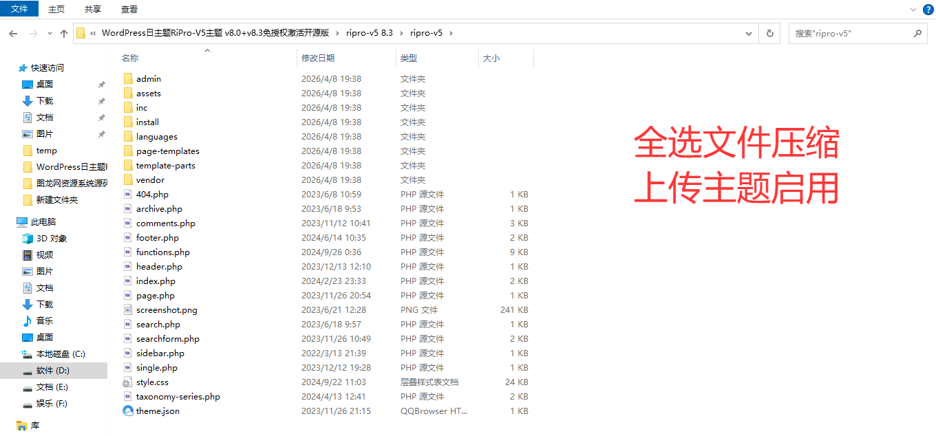 1、下载主题源码 ripro-v5.zip 进行安装。